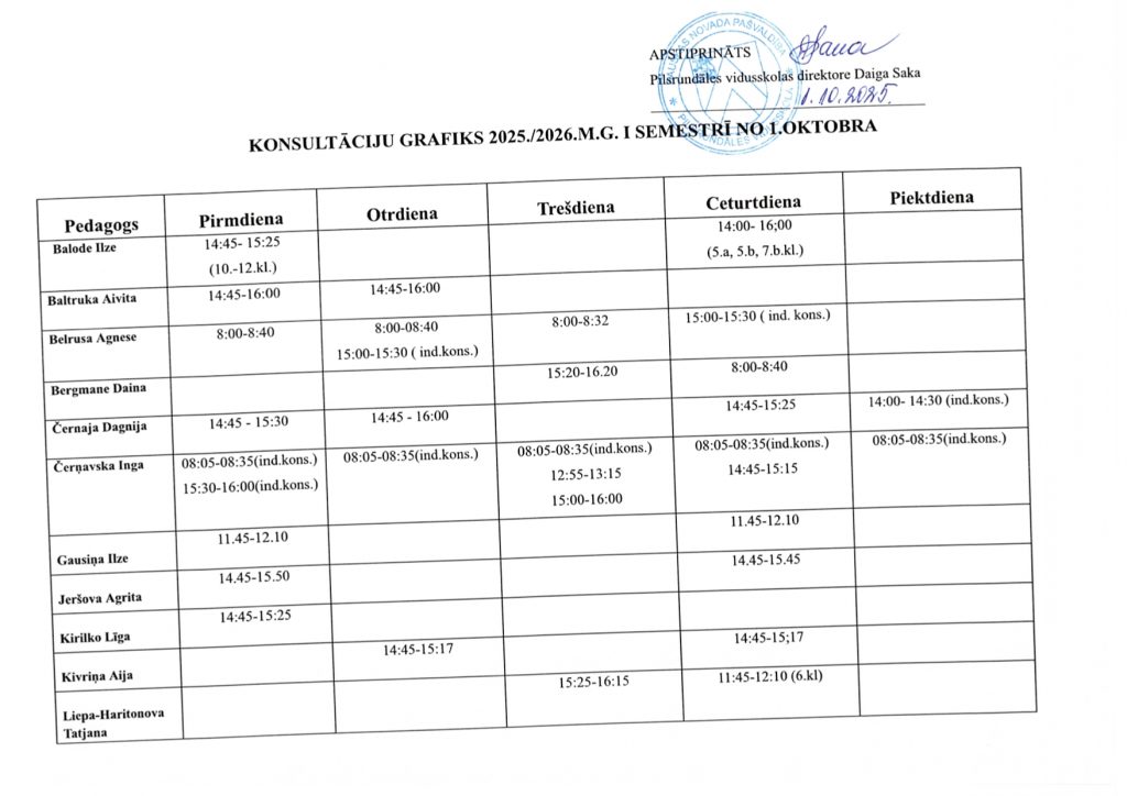 Konsultāciju grafiks 2025./2026. mācību gadā