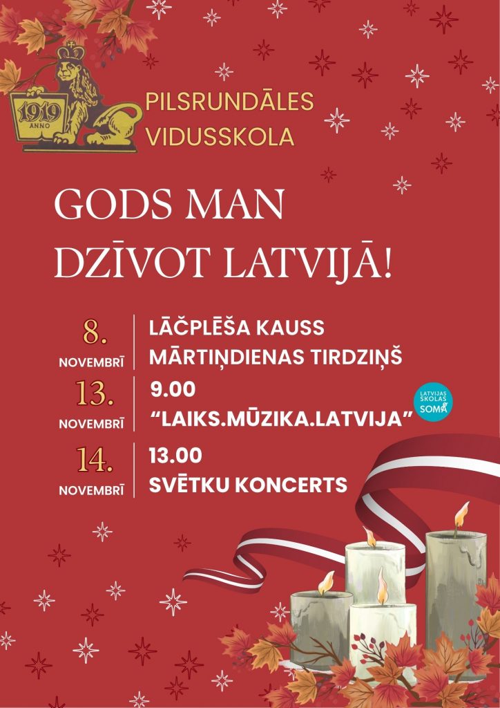 Pilsrundāles vidusskolā novembris vienmēr ir īpašs – tas ir patriotisma mēnesis, kad skolā valda lepnuma, piederības un vienotības sajūta. Šajā laikā īpaši godinām Latvijas brīvības cīnītājus, kopjam nacionālās tradīcijas un stiprinām mīlestību pret savu valsti.
